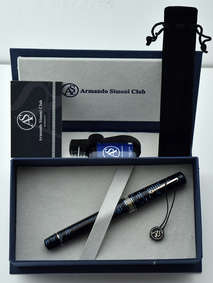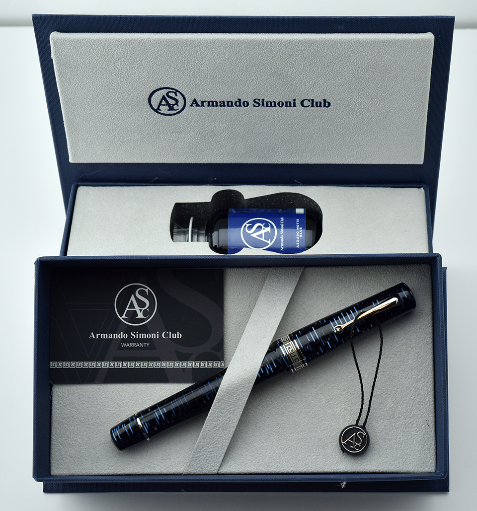 ARMANDO SIMONI CLUB BOLOGNA EXTRA MANHATTAN SKYSCRAPER BLUE LIMITED EDITION FOUNTAIN PEN LE 50 FINE 14K GOLD NIB NEW IN ORIGINAL PACKAGING WITH INK BOTTLE ORIGINAL PHOTOS WILL GIVE YOU THE BEST DESCRIPTION POSSIBLE